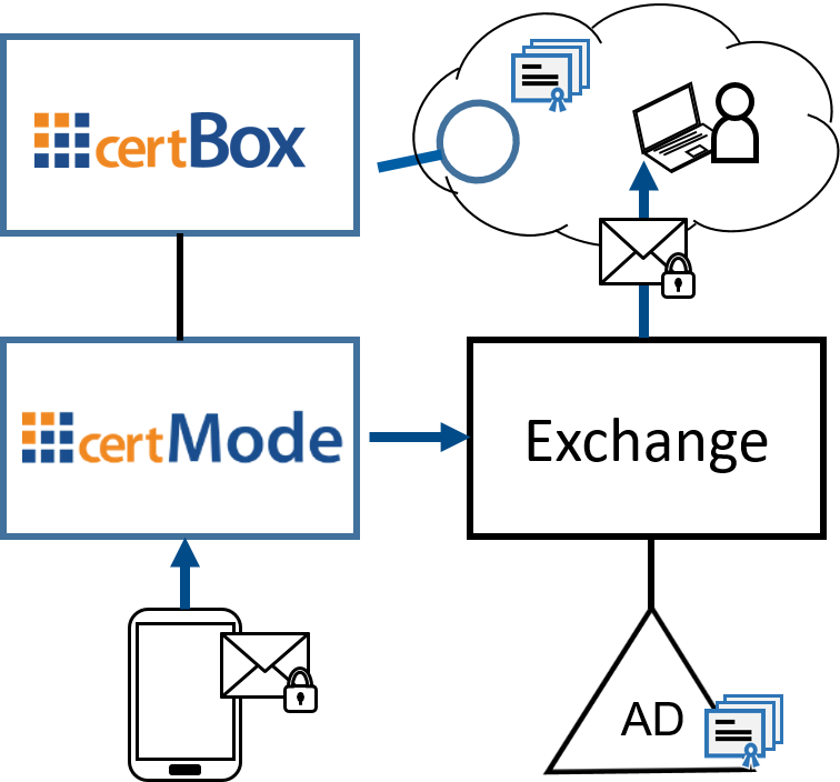 Damit ein iPhone- oder Android-Nutzer E-Mails an externe Empfänger verschlüsseln kann, sind deren X.509-Zertifikate erforderlich. Diese stehen über öffentliche Zertifikatsverzeichnisse zum Abruf per LDAP zur Verfügung. Damit ein mobiler Client auf solche Verzeichnisdienste zugreifen kann, müssen die Zertifikatssuchanfragen im E-Mail-Austauschprotokoll entsprechend konvertiert und weitergeleitet werden.